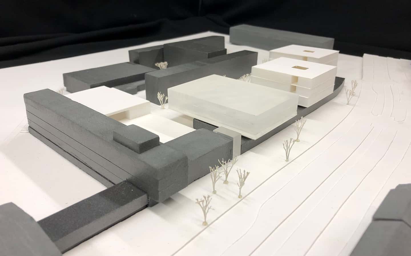 Aufgrund des Baugrundes konnte nicht tief ins Erdreich gebaut werden, so ist beinahe die gesamte Baumasse oberirdisch als Campus aus Einzelgebäuden, die durch eine Magistrale die bestehende Gebäudestruktur entlang der Siegburger Straße fortsetzt. Über diese Magistrale werden 3 Baukörper erschlossen, die sich - wie der Bestandsriegel - orthogonal zur erdgeschossigen Gebäudestruktur in ost-westlicher Ausrichtung ausdehnen.