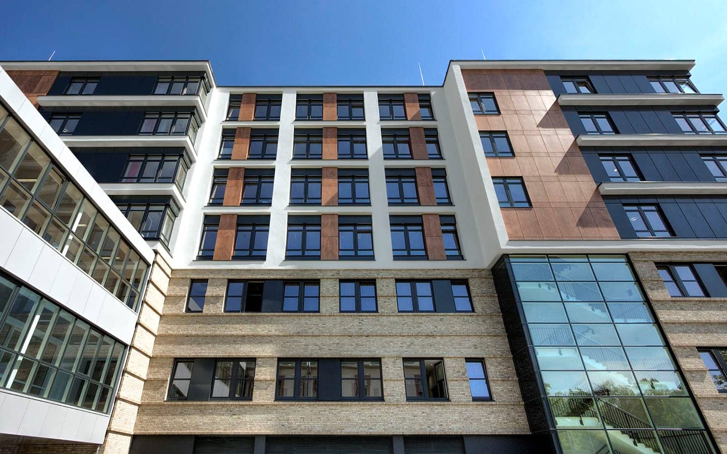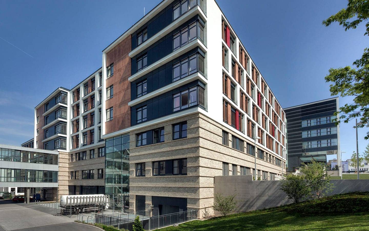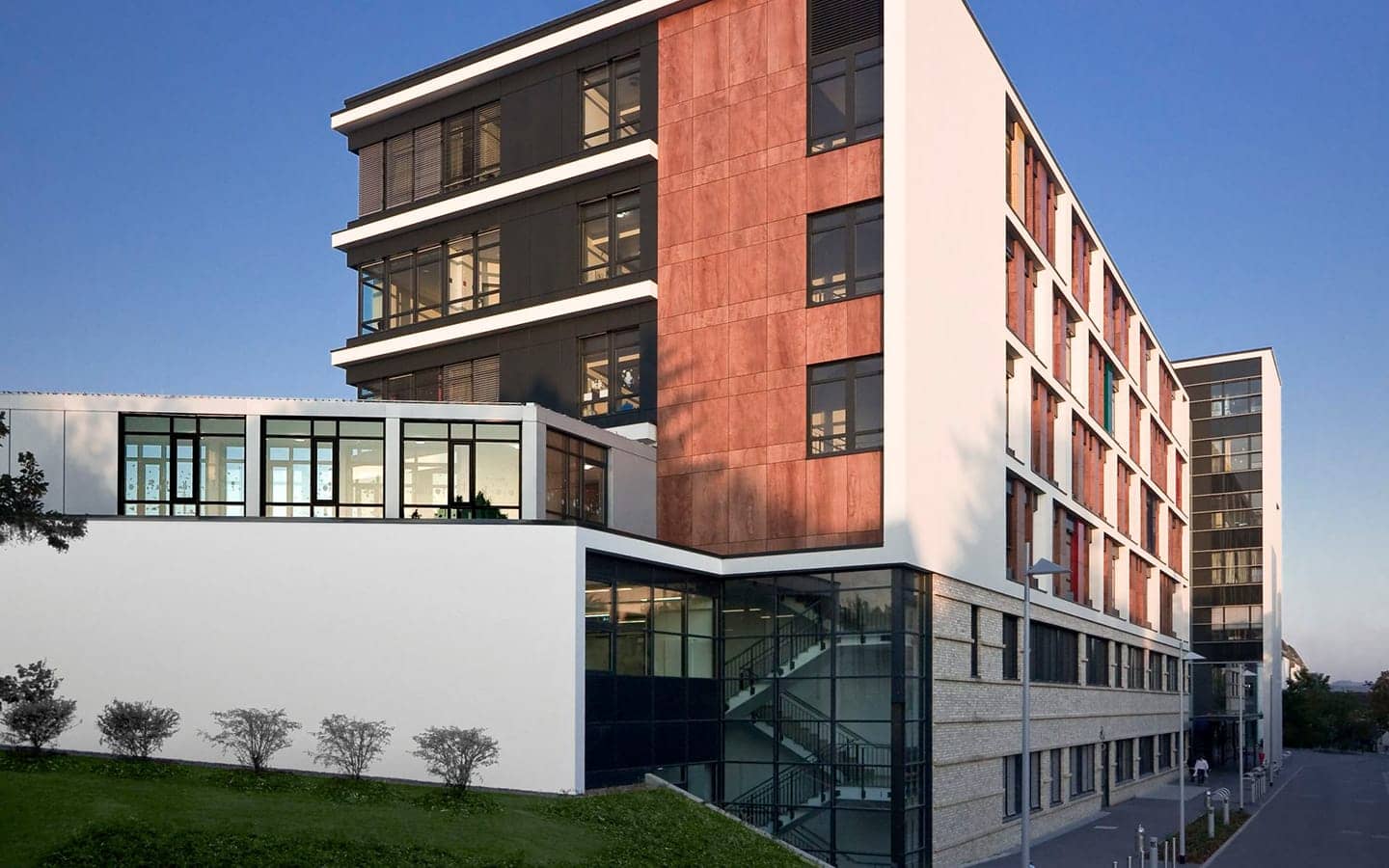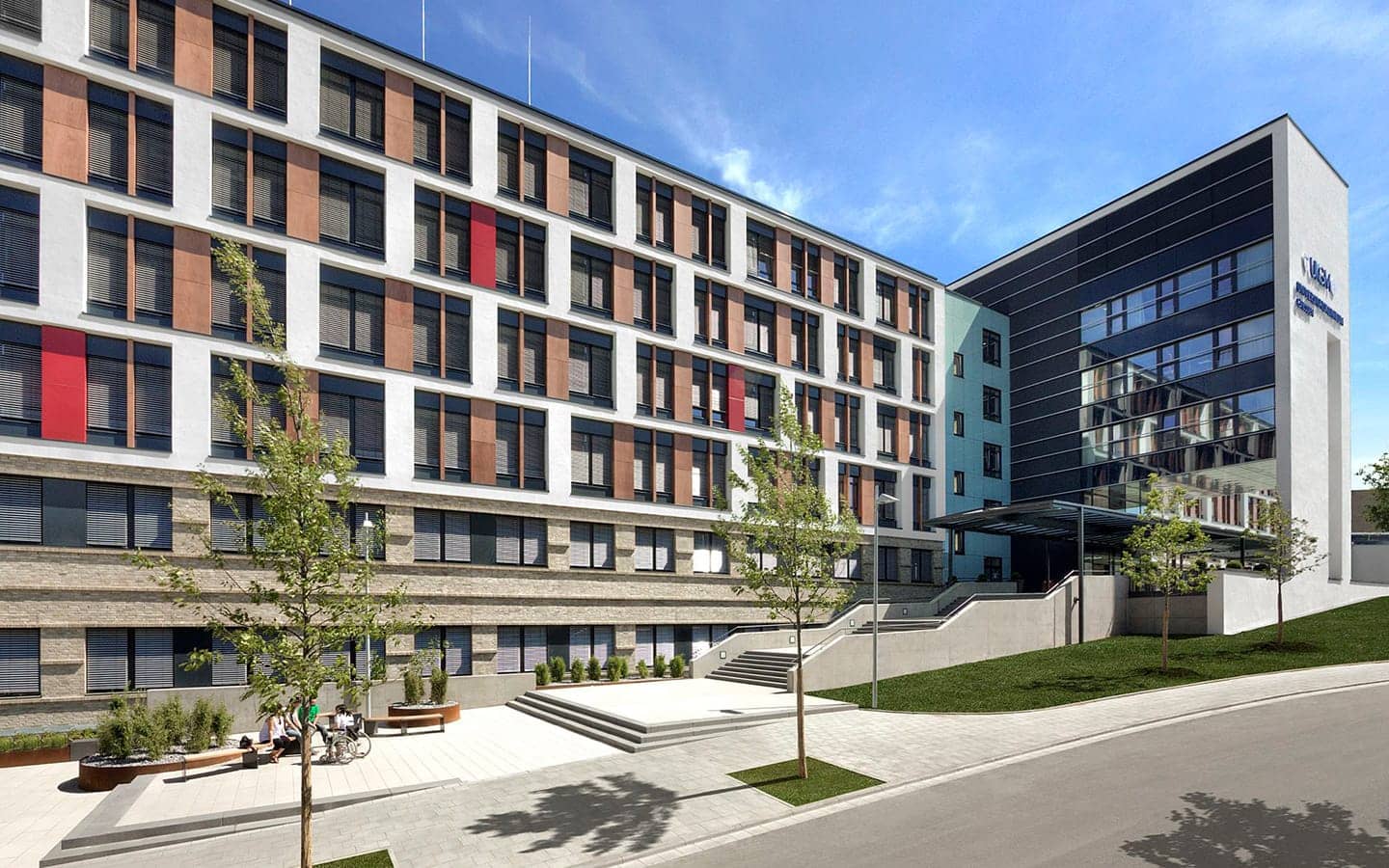 Auf insgesamt 6 Funktionsebenen werden die Patienten unter einem Dach interdisziplinär und nach modernsten medizinischen Gesichtspunkten versorgt. Das Gebäude beinhaltet alle somatischen Klinikbereiche mit 692 Patientenbetten sowie umfangreiche Flächen für Forschung und Lehre. Es gilt als ´Leuchtturm der deutschen Hochschulmedizin´. Die Erschließung der kammartigen Gebäudestruktur erfolgt auf allen Ebenen patientengerecht über eine Hauptmagistrale.